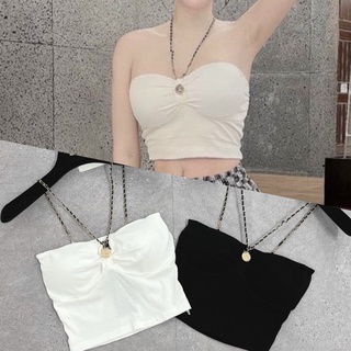 Có mút ngực Áo Yếm Croptop Dây Phối Xích Cúp Bo Tròn Mút Ngực alohashop91
