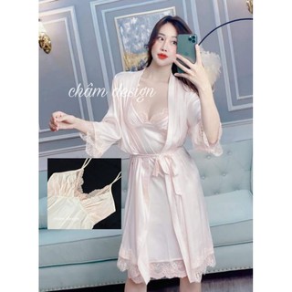 sét choàng và váy lụa ngủ phớt hồng( thiết kế độc quyền) sét có 3 size khách hãy ib cho shop để chọn cỡ chuẩn.