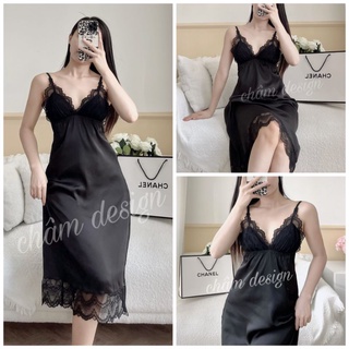 PHIÊN BẢN GIỚI HẠN SLváy ngủ lụa satin đen kết hợp chân ren mi siêu đẹp, hàng thiết kế độc quyền tại shop