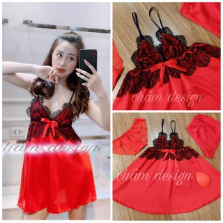 váy ngủ lụa đỏ ốp ren chân ngực hàng thiết kế độc quyền tại shop