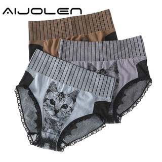 Quần lót AIJOLEN lưng cao thoáng khí tôn dáng thân thiện với làn da in họa tiết mèo dễ thương dành cho nữ