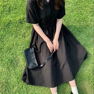 Đầm đen tiểu thư Hàn Quốc mindi eo thun xinh xắn