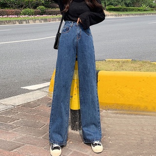 Quần Jean Trơn Ống Rộng Lưng Cao Thời Trang Hàn Quốc Dành Cho Nữ