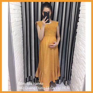 [HANNA] Đầm bầu dự tiệc sang chảnh cho mẹ trẻ có size 40-80kg mẫu xinh vải cao cấp thoáng mát không nhăn đầm dài qua gối