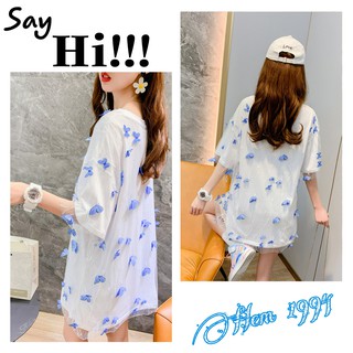 ÁO THUN FORM RỘNG NGẮN TAY COTTON HỌA TIẾT REN