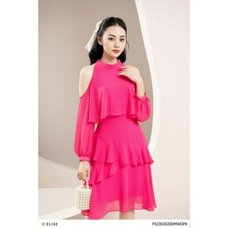 Đầm chiffon hồng hở vai thiết kế Elise FS2303020DMWOPK