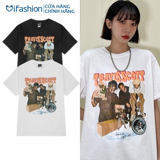 Áo thun unisex IFASHION chất cotton mát form rộng tay lỡ in hình Tbavis Scott N136