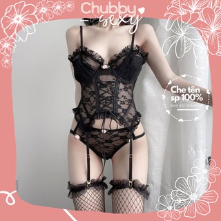 Bodysuit Corset 2 Mảnh Sexy Lady - Set Corset Vải Ren Cao Cấp Đan Dây Chỉnh Eo Siêu Tôn Dáng - BDS06 - Chubby.Sexy