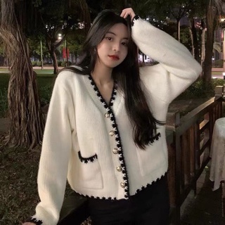 Áo cardigan tweed cổ viền sang chảnh len mịn Hàn Quốc