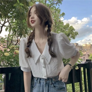 Áo Sơ Mi Ngắn Tay Phồng Cổ Búp Bê Thời Trang Mùa Hè Dành Cho Nữ