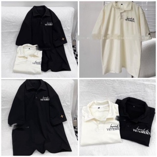 Áo Thun Polo Tay Lỡ Vetements 2 Màu Basic Đen Trắng Form Rộng Unisex Nam Nữ(Hàng Sẵn)