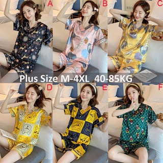 Bộ Đồ Ngủ Tay Ngắn Chất Lụa Satin Plus Size M-4XL Thời Trang Hàn Quốc Cho Nữ