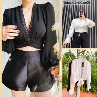 Set Bộ Nữ Áo Sơ Mi Bigsize Phối Quần Short Ống Rộng Lên Phom Tôn Dáng Che Bụng Cực Xinh MÃ SET3