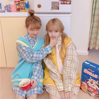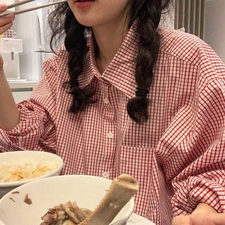 Mới Áo Sơ Mi Tay Dài Dáng Rộng Kẻ Ca-Rô Trẻ Trung Phong Cách Hàn Quốc Cho Bạn Gái