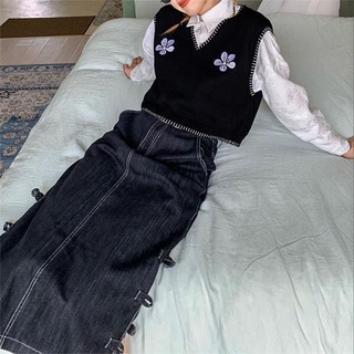 Áo dệt kim sát nách cổ V thêu họa tiết xinh xắn kiểu Hàn Quốc thời trang độc đáo cho nữ