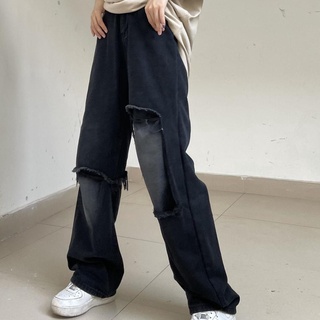 Quần jean dài lưng cao ống rộng dáng suông kiểu retro cá tính cho nữ
