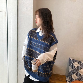 Áo Gile New Girl Student Loose College Knit Pullover V-neck Vest Women