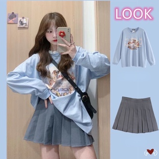 Set áo tay dài dáng rộng và chân váy xếp ly xinh xắn cho nữ (Có bán lẻ)
