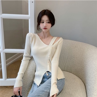 Áo len tay dài xẻ tà thời trang dành cho nữ