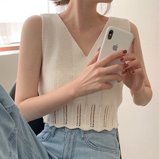 Áo Dệt Kim Sát Nách Cổ Chữ V Xếp Nếp Thời Trang