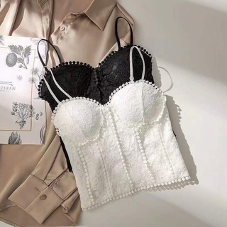 Áo Lửng Hai Dây Phối Ren Màu Trơn Đen Trắng Gợi Cảm Thời Trang Mùa Hè Cho Nữ