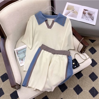 Áo polo Dệt Kim Tay Ngắn Kẻ Sọc Màu Sắc Tương Phản Kiểu Retro Hàn Quốc
