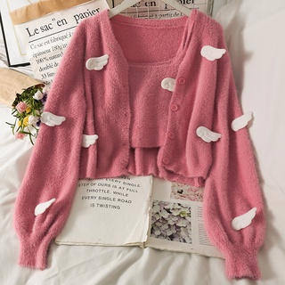 Bộ Áo Khoác cardigan Dệt Kim Phối Áo Hai Dây Thời Trang Mới Cho Nữ