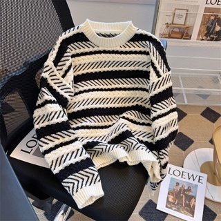 Áo Len Họa Tiết Kẻ Sọc Màu Sắc Tương Phản Phong Cách Hàn Quốc Thời Trang Thu Đông Cho Nữ