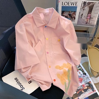 Áo Sơ Mi Cổ Bẻ Dáng Rộng Màu Hồng Dễ Phối Đồ Phong Cách retro