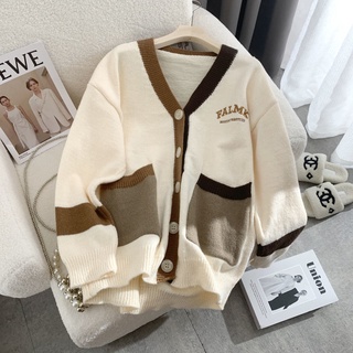 Áo Khoác Cardigan Dệt Kim Dáng Rộng Thêu Chữ Màu Sắc Tương Phản Thời Trang Thu Đông Cho Sinh Viên