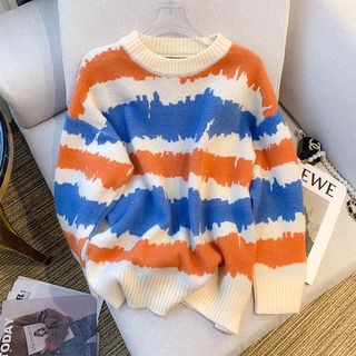 Áo sweater Dáng Rộng Họa Tiết Kẻ Sọc Màu Tương Phản Thời Trang Thu Đông Mới Cho Nữ