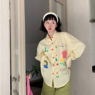 Áo Sơ Mi Tay Dài Dáng Rộng In Họa Tiết Graffiti Phong Cách Hàn Quốc Ngọt Ngào Cho Nữ