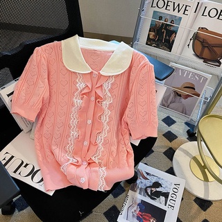 Áo Thun Tay Ngắn Phồng Cổ Polo Phối Ren Thời Trang Mùa Hè