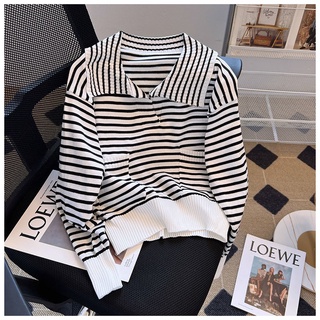 Áo sweater Dệt Kim Cổ Polo Tay Dài Kẻ Sọc Thiết Kế Mới Mùa Thu Dễ Phối Đồ Cho Nữ