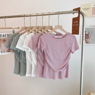 Áo Thun Tay Ngắn Dáng Ôm Xếp Ly Thời Trang Hàng Mới Dành Cho Bạn Nữ Dễ Phối Đồ