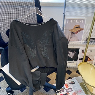 Áo Sweater Cổ Chữ V In Họa Tiết Bướm Xinh Xắn Theo Phong Cách Mùa Thu Retro Dành Cho Nữ