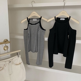 Áo Tay Dài Trễ Vai Hoạ Tiết Kẻ Sọc Thiết Kế Mới Thời Trang Mùa Hè Cho Phái Nữ