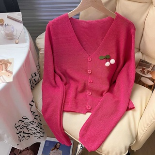 Áo Khoác cardigan Dệt Kim Cổ Chữ V Cao Cấp In Họa Tiết Hoa Anh Đào Phong Cách Ngọt Ngào Cho Nữ