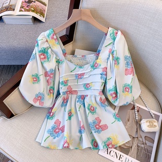 Áo Kiểu Tay Ngắn Cổ Vuông In Hoa Thời Trang Mùa Hè Xinh Xắn Cho Nữ