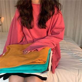 Áo Thun Tay Dài Cổ Chữ U Màu Sắc Đơn Giản Cho Nữ
