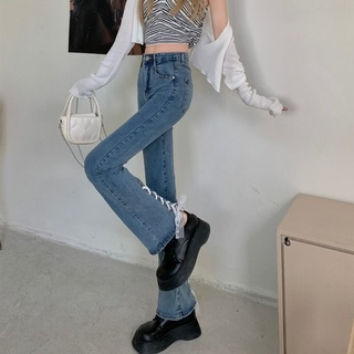 Quần Jean Lưng Cao Ống Loe Ôm Dáng Phối Dây Cột Thời Trang Cho Nữ