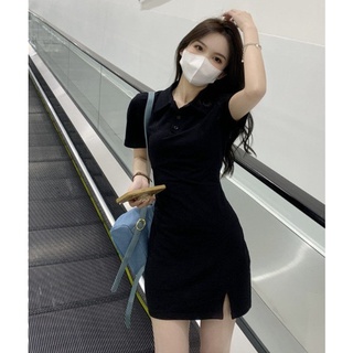 Đầm Thun Đen Cổ polo Dáng Ôm Chiết Eo Cá Tính Dễ Phối Đồ