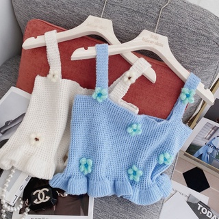 Áo Hai Dây Dệt Kim Màu Trơn Phong Cách Ngọt Ngào Cho Bạn Gái
