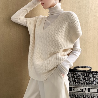 Áo Len Nữ Không Tay Cổ Chữ V Màu Sắc Retro Thời Trang