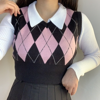 Áo Khoác Cardigan Dệt Kim Tay Dài Dáng Rộng Họa Tiết Viên Kim Cương Kiểu Hàn Quốc Xinh Xắn