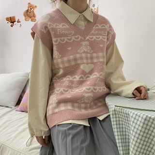Áo Sweater Dệt Kim Sát Nách In Hình Gấu Dễ Thương Cho Nữ