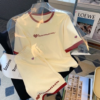 Bộ Áo Thun Thêu Màu Tương Phản Phối Quần Short Thời Trang Hè Cá Tính Cho Nữ
