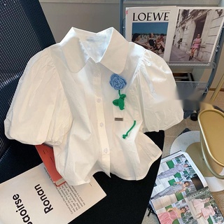 Áo Sơ Mi Trắng Tay Phồng Họa Tiết Hoa Ba Chiều Sang Trọng Thanh Lịch Thời Trang Mùa Hè Dành Cho Nữ