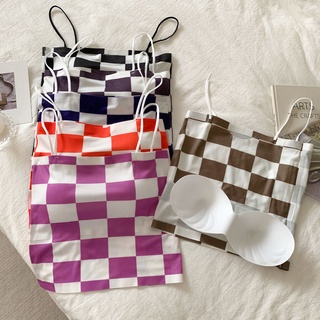 Áo hai dây caro màu sắc thời trang Hàn Quốc cho nữ