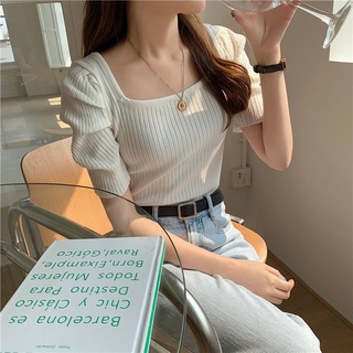 Áo Dệt Kim Tay Ngắn Cổ Vuông Hở Xương Quai Xanh Quyến Rũ Trẻ Trung Cho Bạn Gái